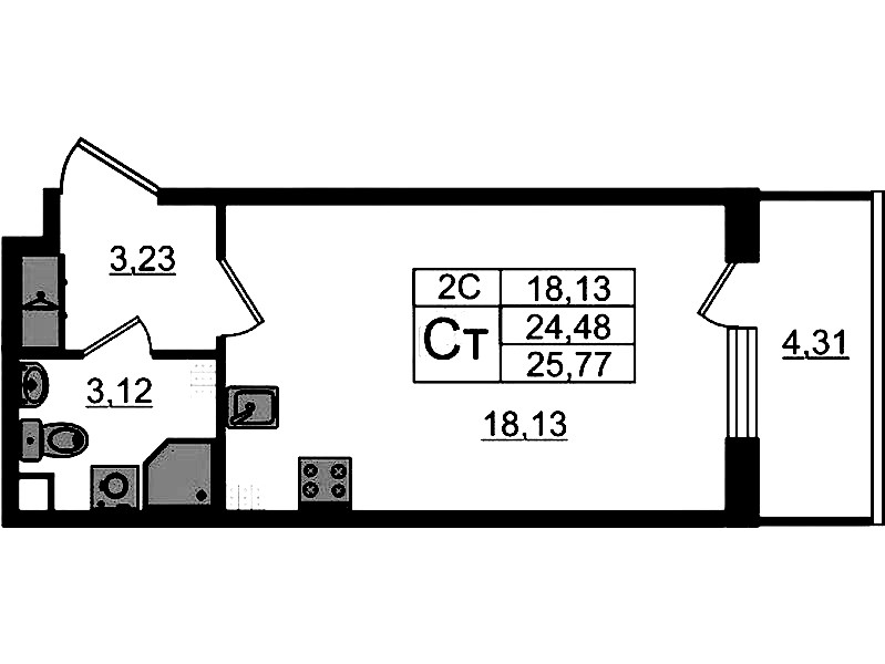 - Площадь24,48 м2