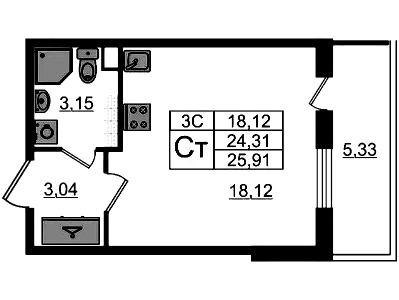• Площадь24,31 м2