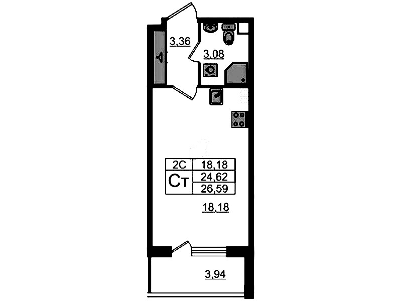 • Площадь24,62 м2