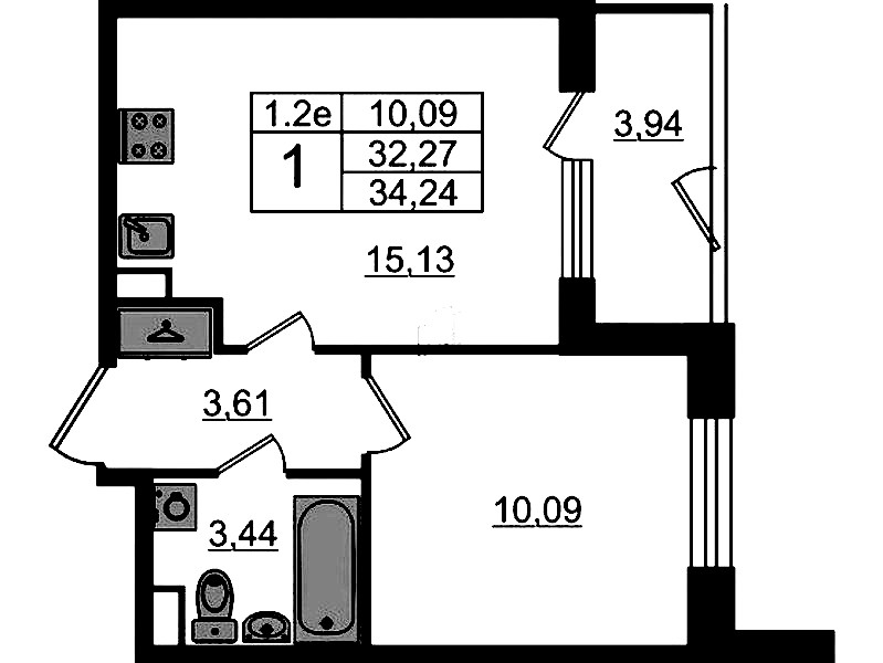 Однокомнатная квартира на 1-ом этаже 32,27 кв.м
