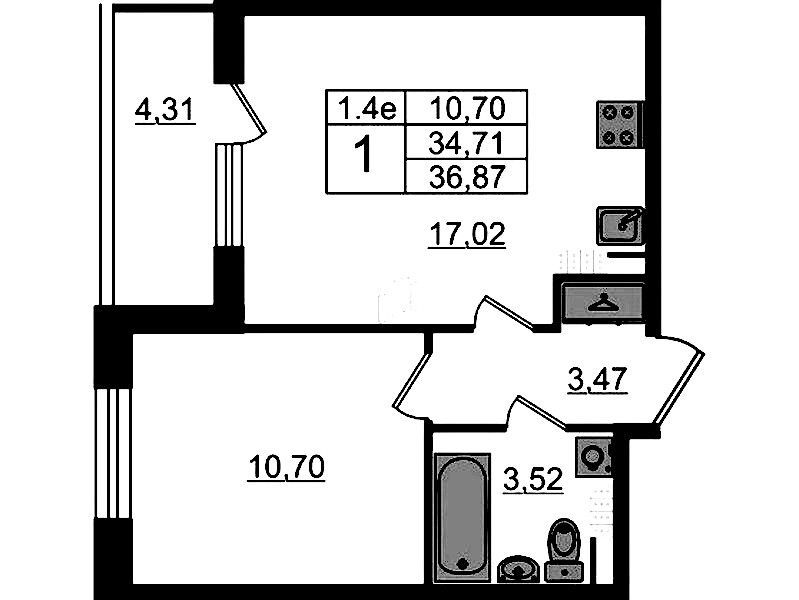 - Площадь34,71 м2
