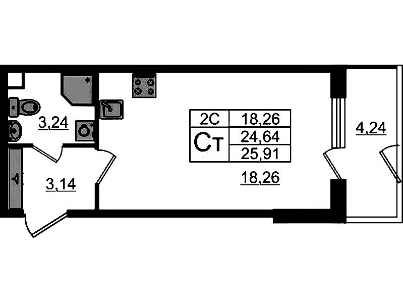 • Площадь24,64 м2