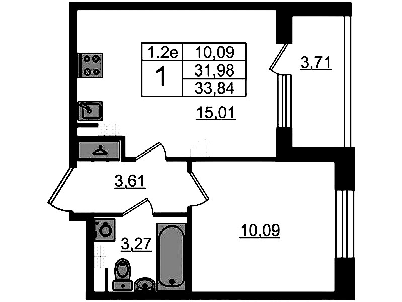 Однокомнатная квартира на 5-ом этаже 31,98 кв.м