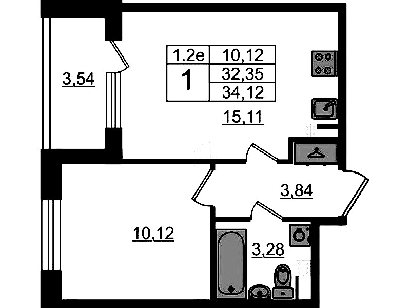 - Площадь кухни15,11 м2