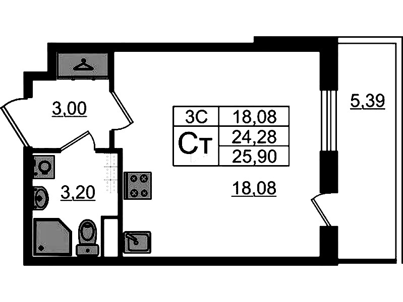 - Площадь24,28 м2