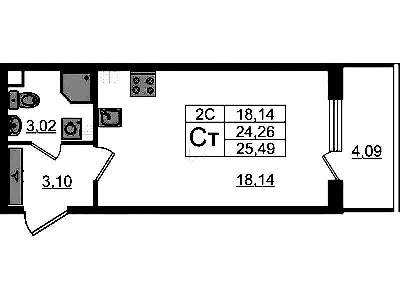 Квартира-студия на 5-ом этаже 24,26 кв.м