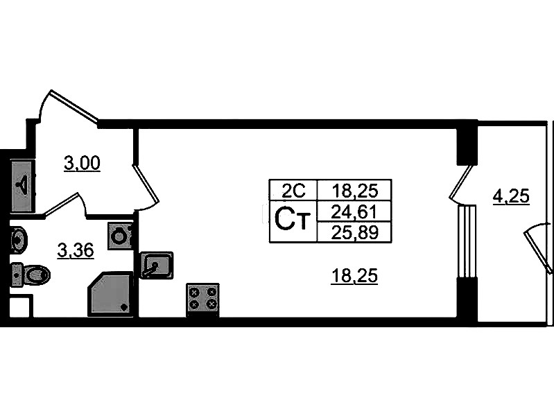 - Площадь24,61 м2
