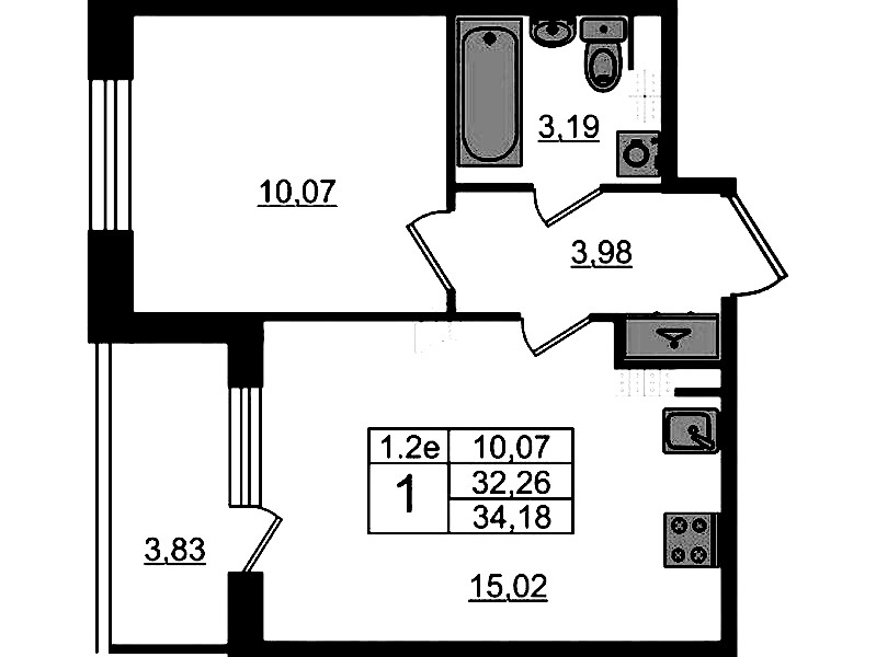 Однокомнатная квартира на 5-ом этаже 32,26 кв.м