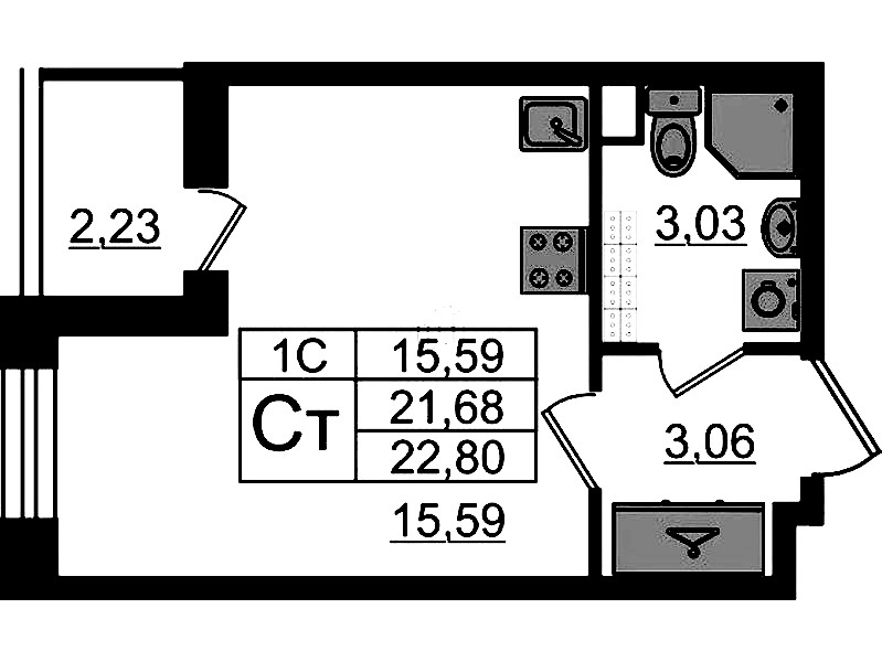 - Площадь21,68 м2
