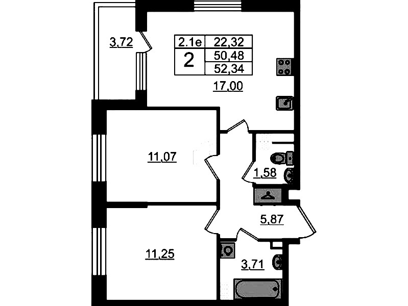 Двухкомнатная квартира на 5-ом этаже 50,48 кв.м