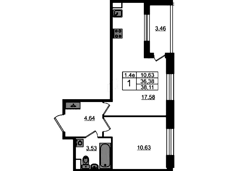 - Площадь36,38 м2
