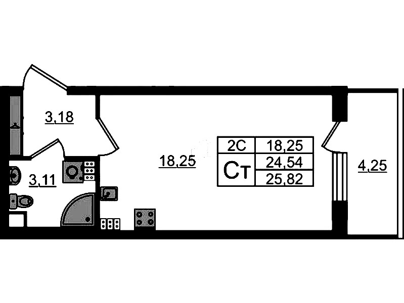 - Площадь24,54 м2