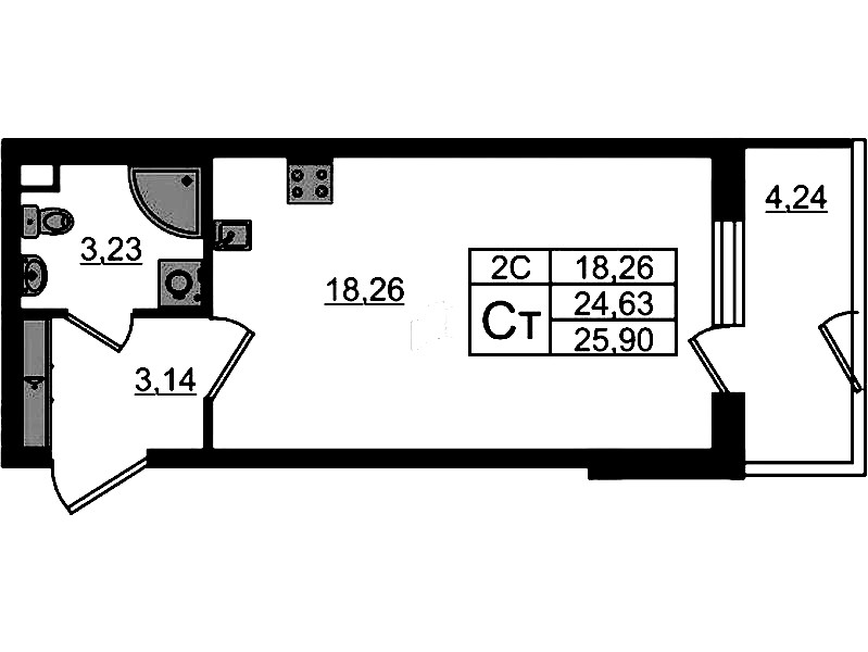 - Площадь24,63 м2