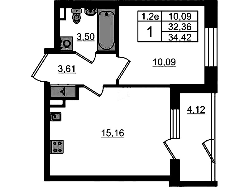 - Площадь кухни15,16 м2