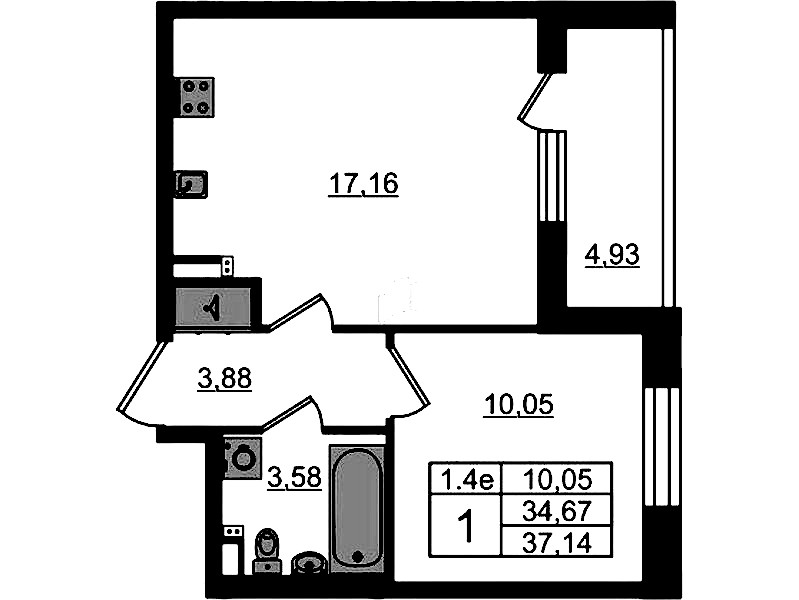 - Площадь34,67 м2