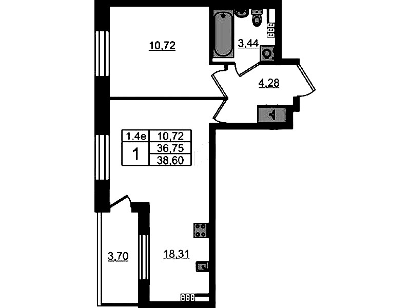 - Площадь кухни18,31 м2