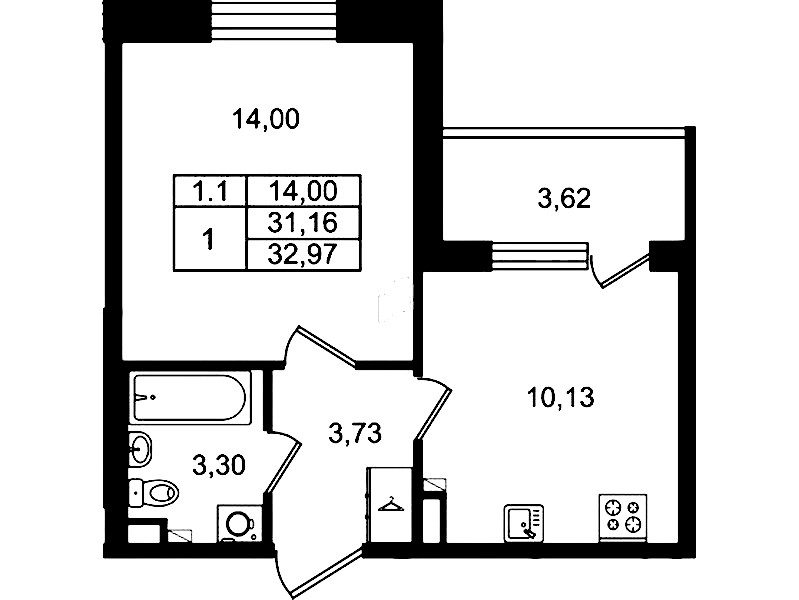 - Площадь31,16 м2