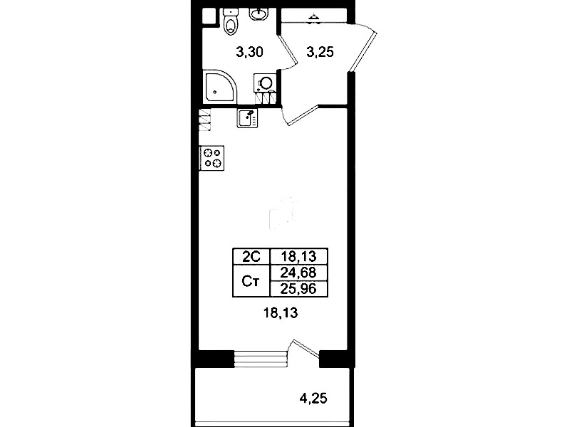 Квартира-студия на 4-ом этаже 24,68 кв.м