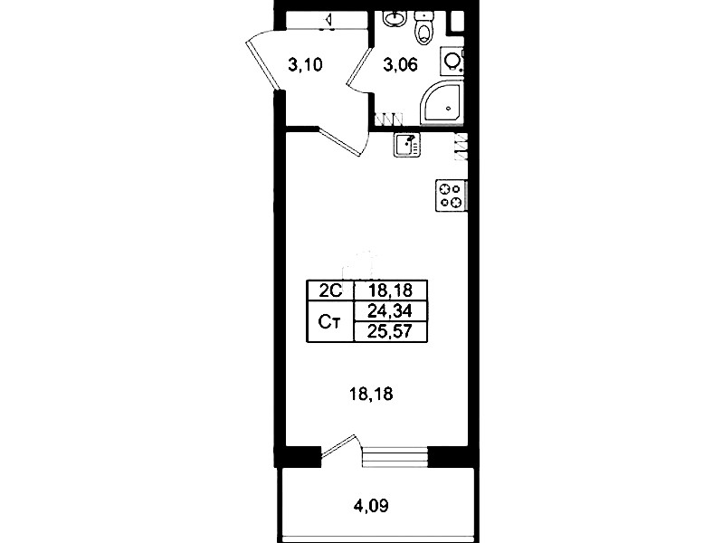- Площадь24,34 м2