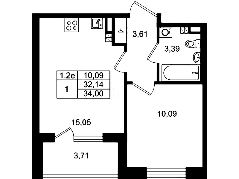 • Площадь кухни15,05 м2