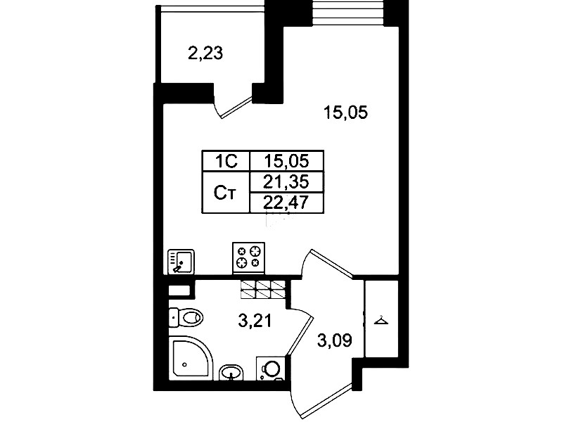 • Площадь21,35 м2