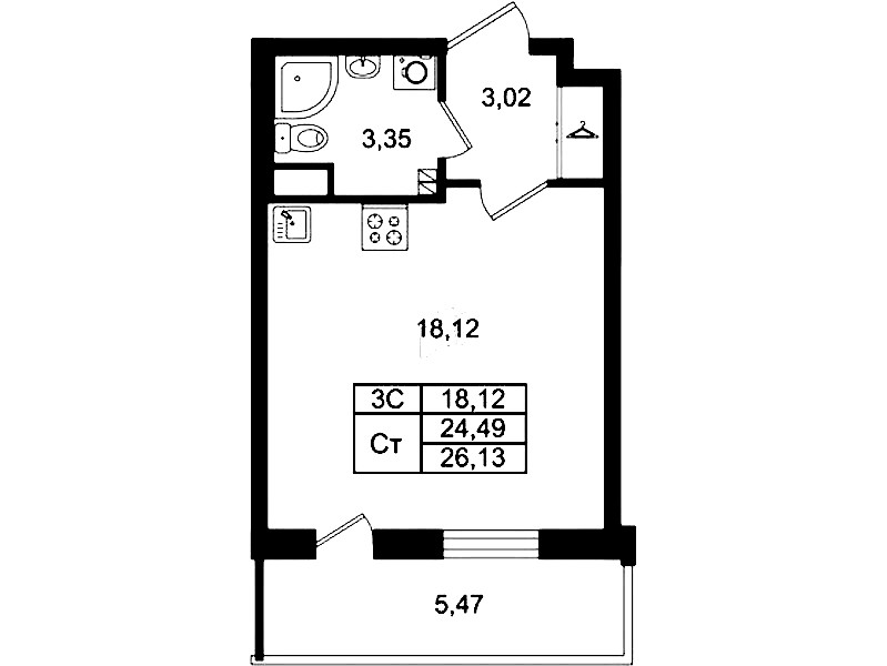 - Площадь24,49 м2