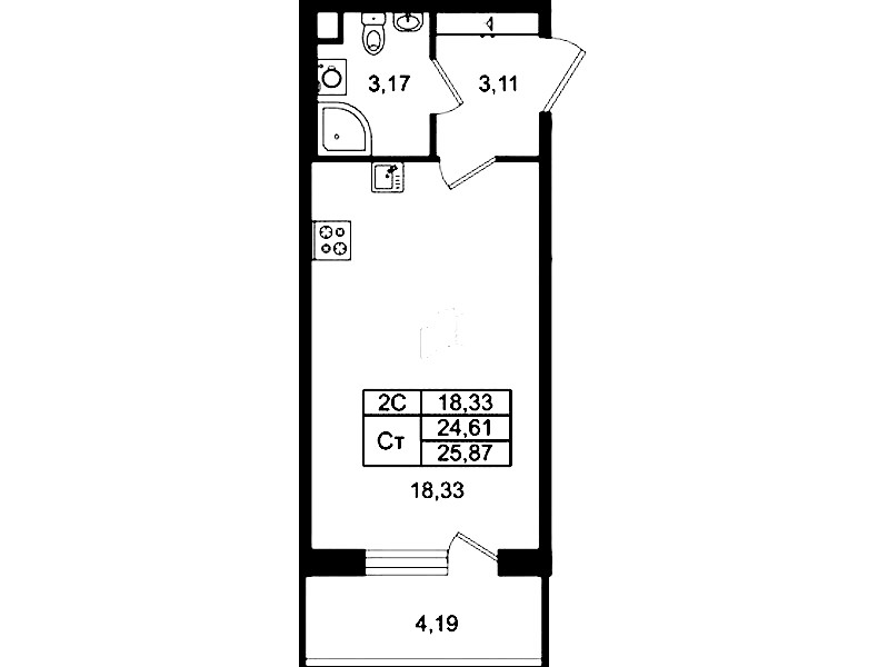 - Площадь24,61 м2