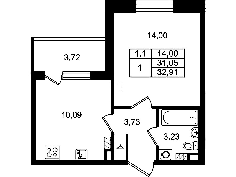 Однокомнатная квартира на 5-ом этаже 31,05 кв.м