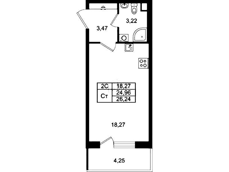 Квартира-студия на 2-ом этаже 24,96 кв.м