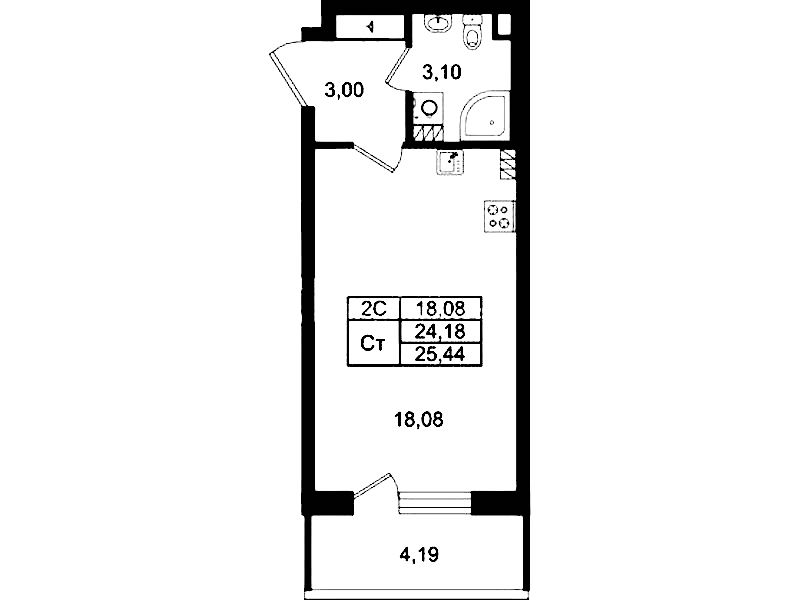 - Площадь24,18 м2