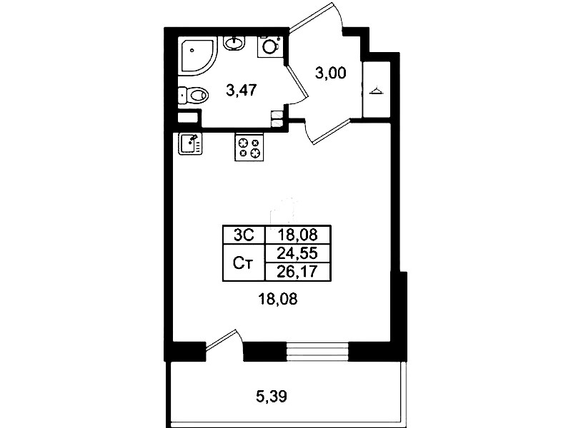 • Площадь24,55 м2