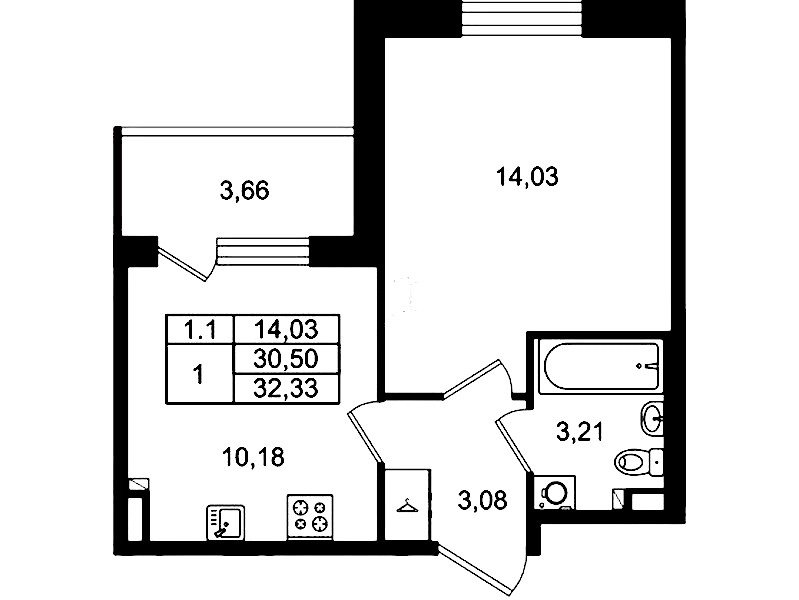 Однокомнатная квартира на 3-ем этаже 30,5 кв.м