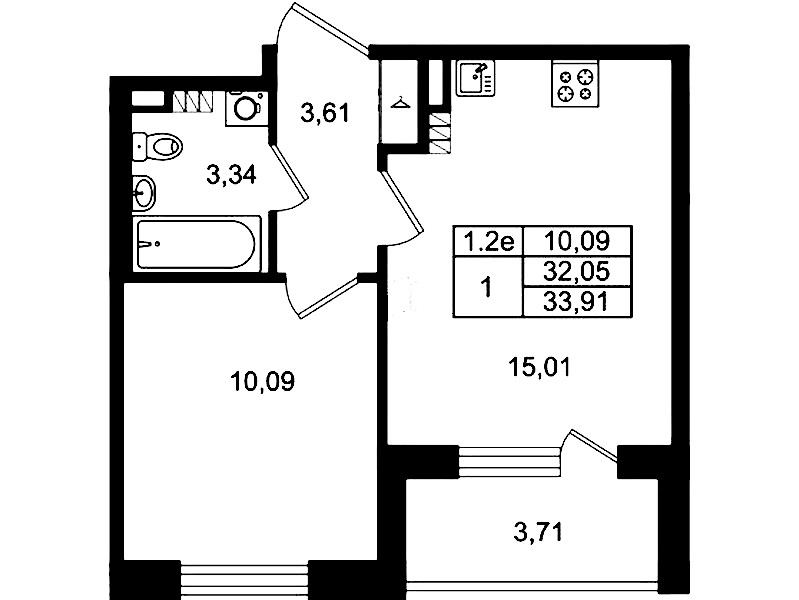 Однокомнатная квартира на 5-ом этаже 32,05 кв.м