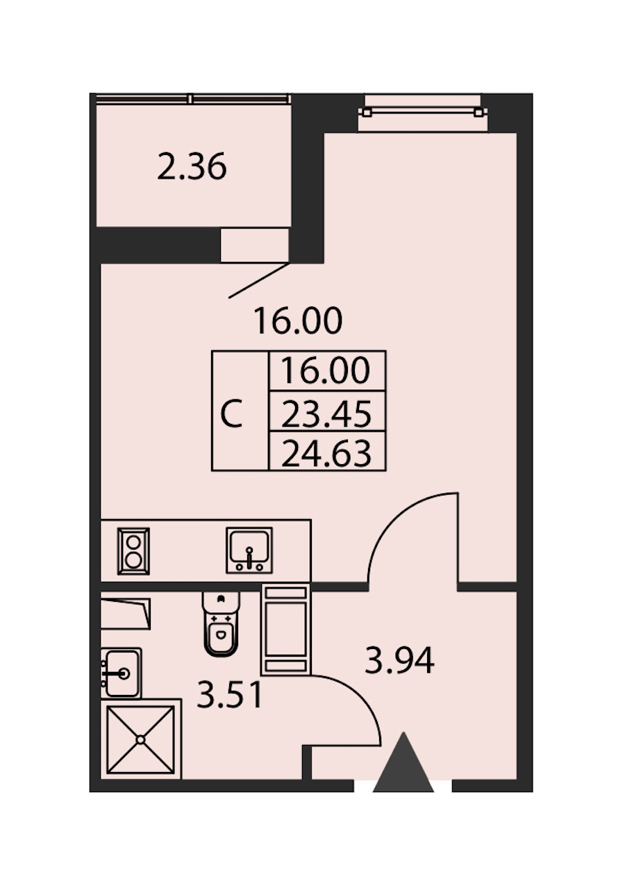 - Площадь23,45 м2