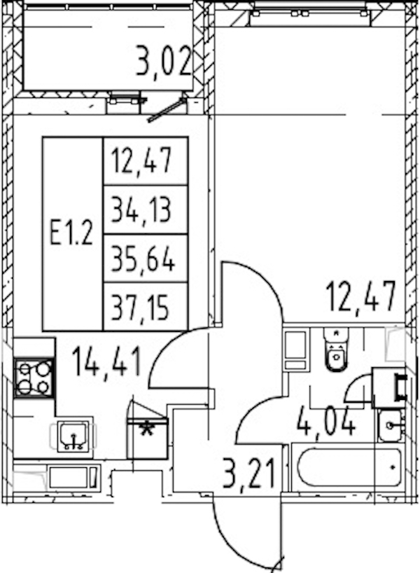 - Площадь кухни14,41 м2