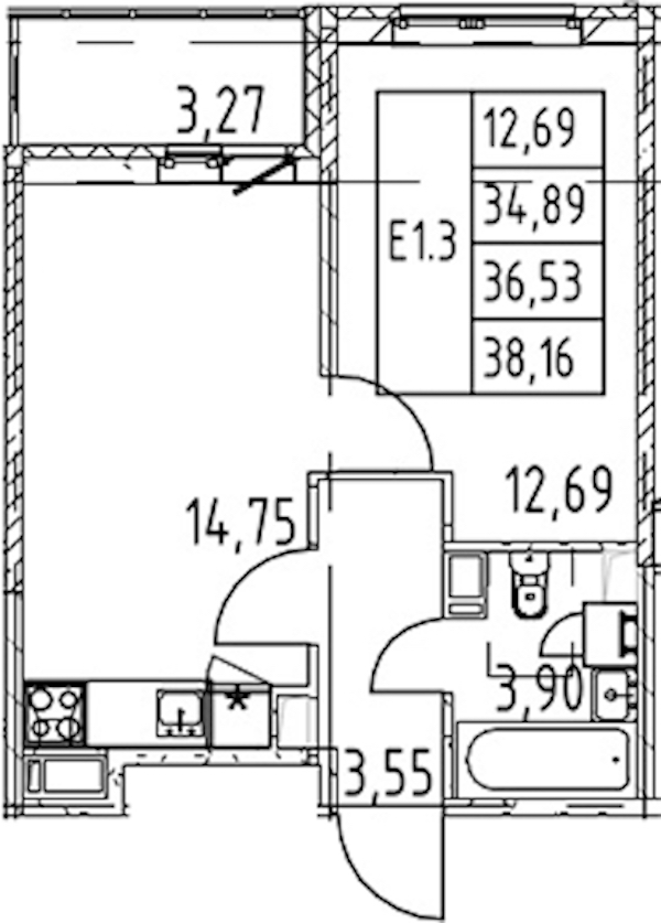 - Площадь34,89 м2