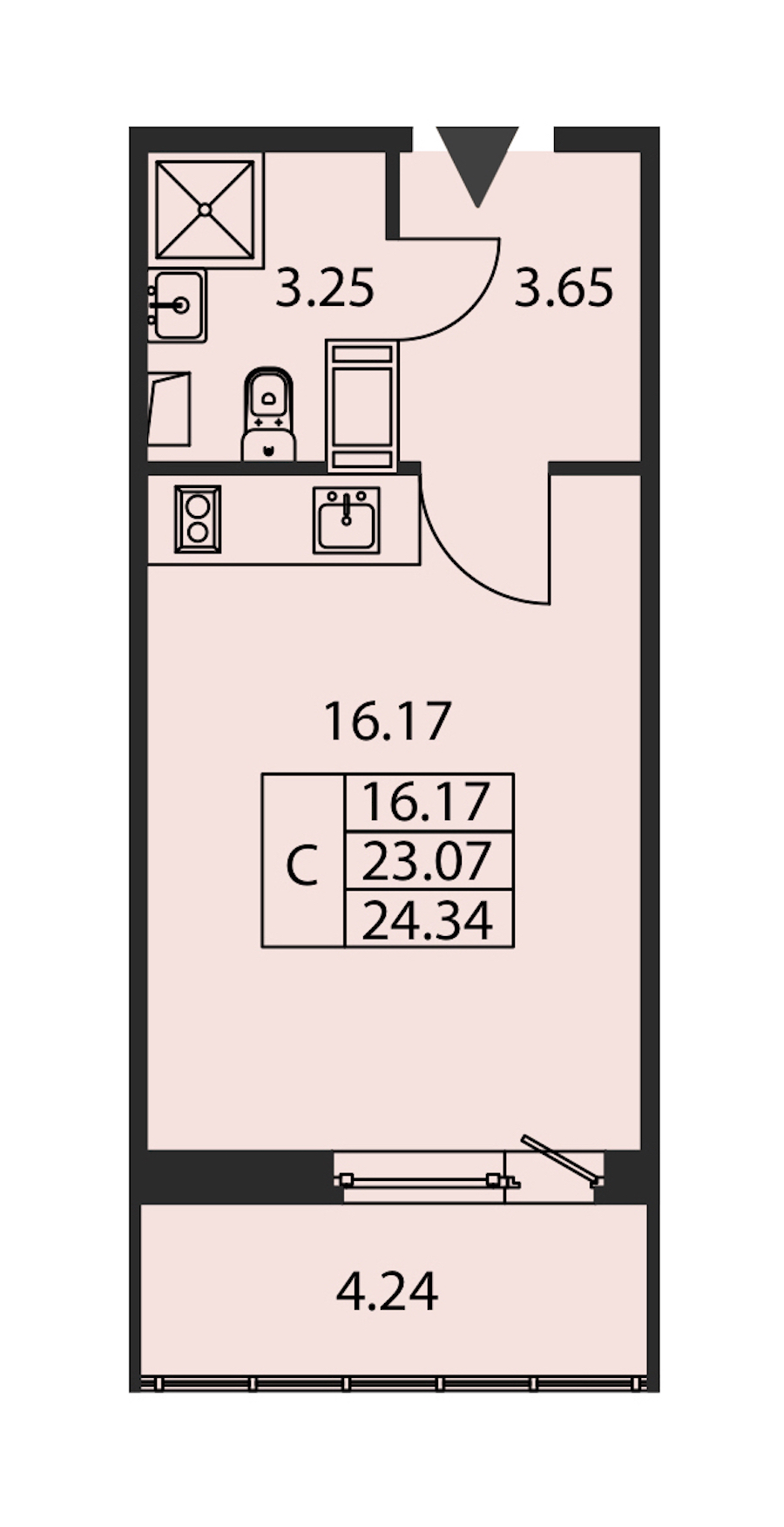 Квартира-студия на 11-ом этаже 23,07 кв.м