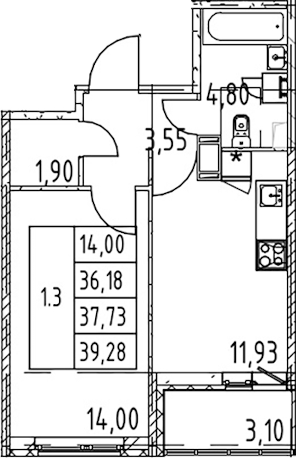 - Площадь кухни11,93 м2