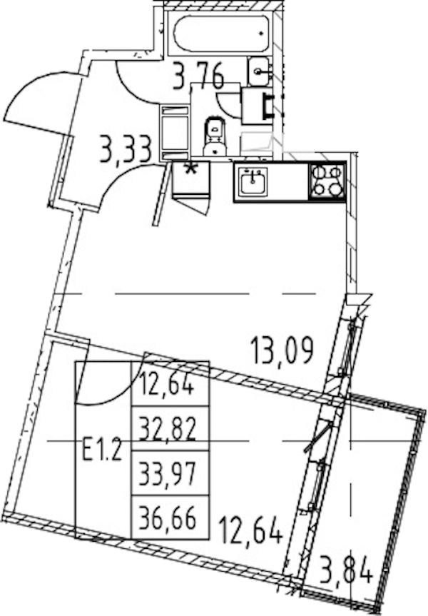 - Площадь кухни13,09 м2