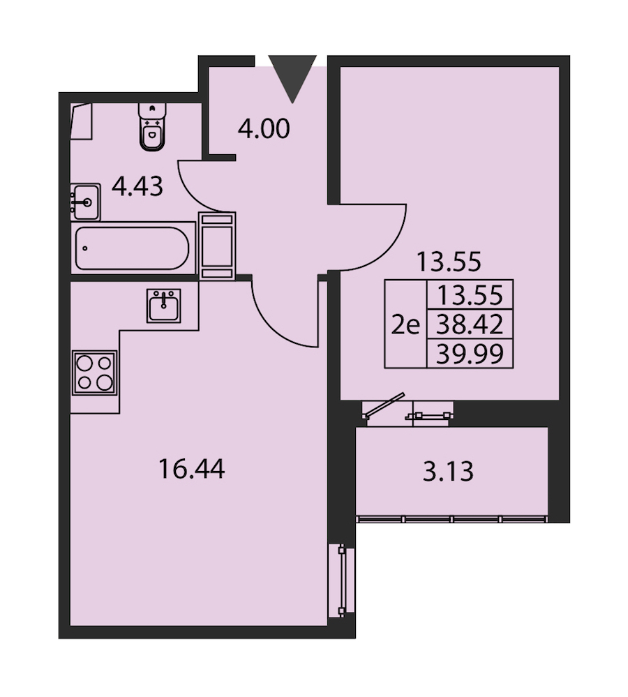 - Площадь38,42 м2