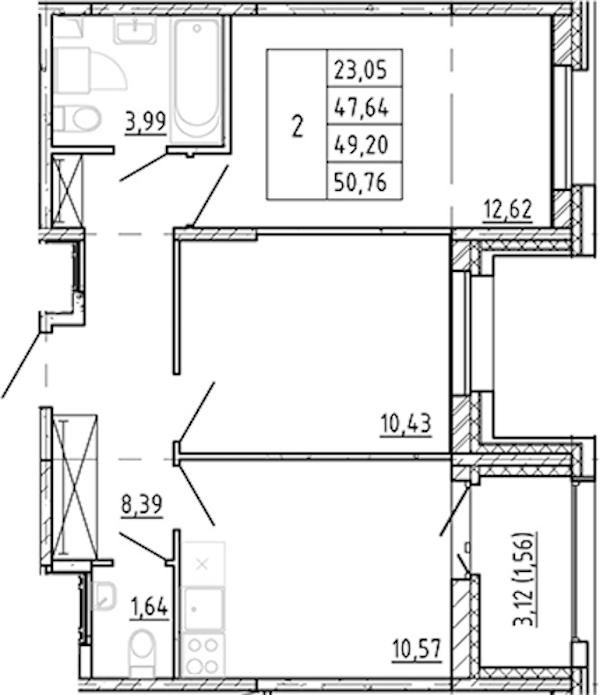 • Площадь47,64 м2