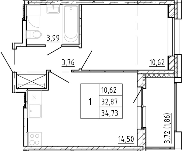 - Площадь32,87 м2
