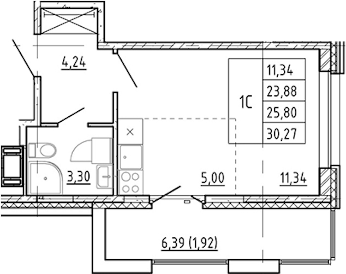 - Площадь23,88 м2