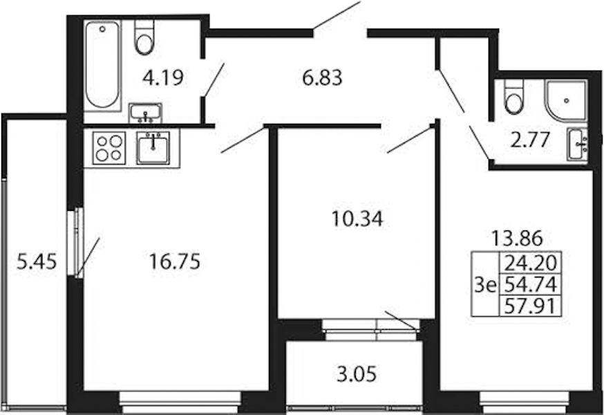 - Площадь54,74 м2