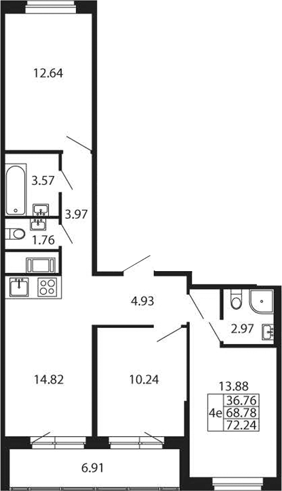 - Площадь68,78 м2