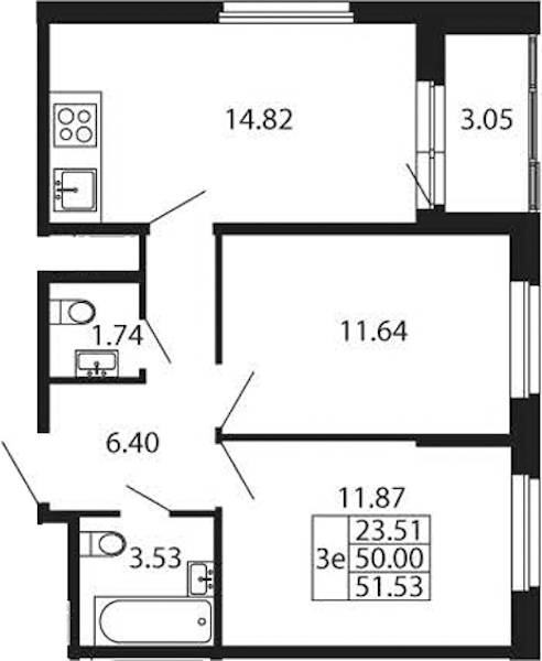 - Площадь кухни14,82 м2