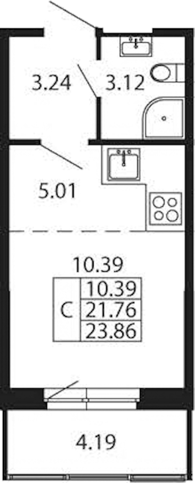 - Площадь21,76 м2