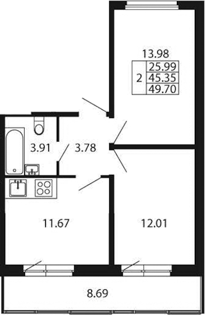 - Площадь45,35 м2