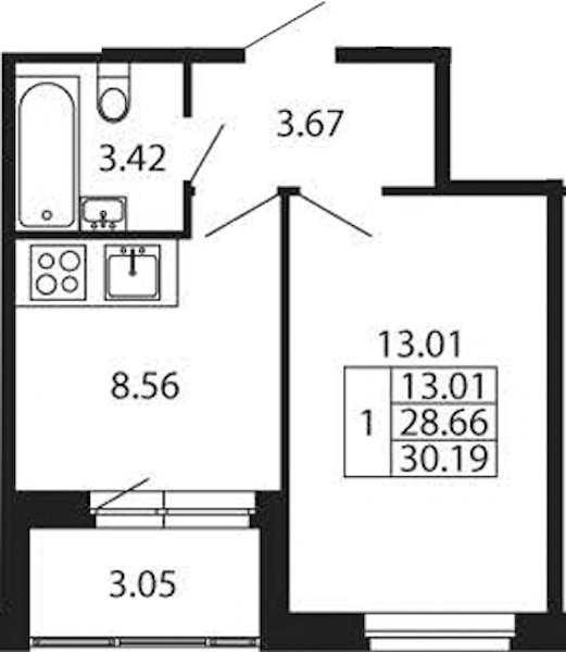 - Площадь28,66 м2