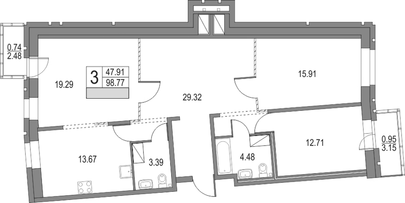 - Площадь98,77 м2